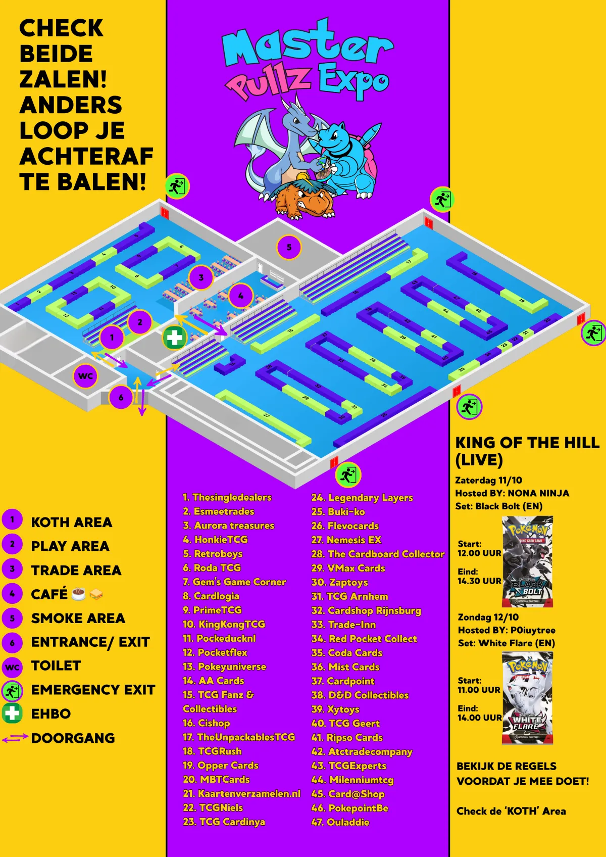 Master Pullz Expo is ontstaan uit pure passie voor Pokémon TCG. Met deze eerste editie willen we een plek creëren waar verzamelaars, traders en fans elkaar kunnen ontmoeten en inspireren. Verwacht een beurs vol unieke kaarten, gezellige stands en exclusieve activiteiten . Alles voor de ultieme Pokémon beleving!